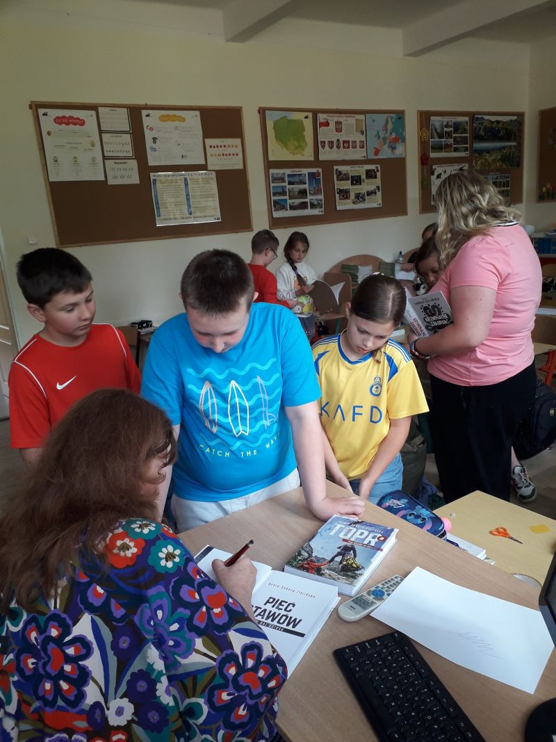 6 czerwca, br. klasa 3a gościła panią Beatę Sabałę - Zielińską, autorkę książek o Zakopanem dla dzieci i dorosłych. W czasie spotkania uczniowie dowiedzieli się wielu cennych informacji o roli psów w ratownictwie górskim - właśnie o tym opowiada jedna z książek pani Beaty. Trzecioklasiści byli bardzo zainteresowani tematem twórczości pisarki, świadczyły o tym liczne pytania kierowane do niecodziennego gościa. Rozmowa zainspirowała uczniów do wykonania wspaniałych prac plastycznych, w których pojawiły się postacie z książek autorstwa naszego gościa. Bardzo dziękujemy pani Beacie Sabale-Zielińskiej za poświęcony czas i ciekawe opowieści.Tekst: Zofia Skowronek
