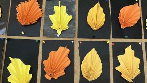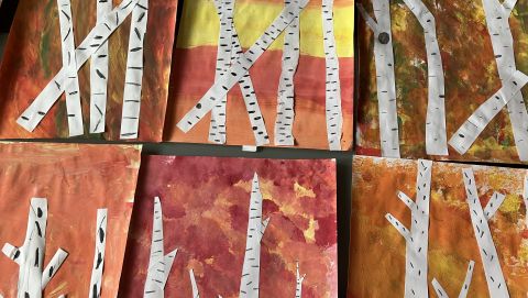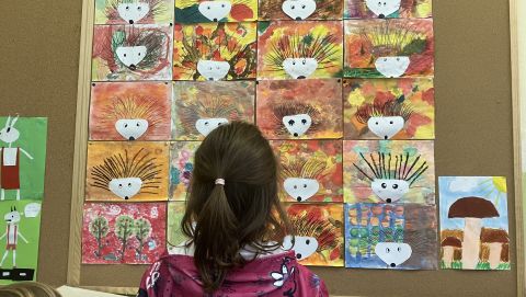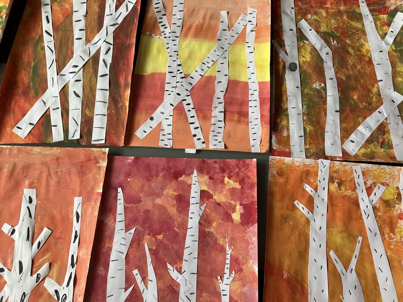 Także na placu zabaw zrobiło się kolorowo. Dzieci bawią się wesoło rozgrzebując i rzucając liście. Zbierają te najpiękniejsze i wykorzystują je w pracach plastycznych. W ruch poszły farby, nożyczki, papiery kolorowe i kleje. Uczniowie eksperymentowali mieszając różne farby i tworzyli barwy jesieni.