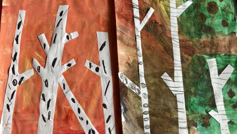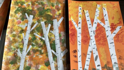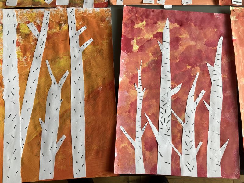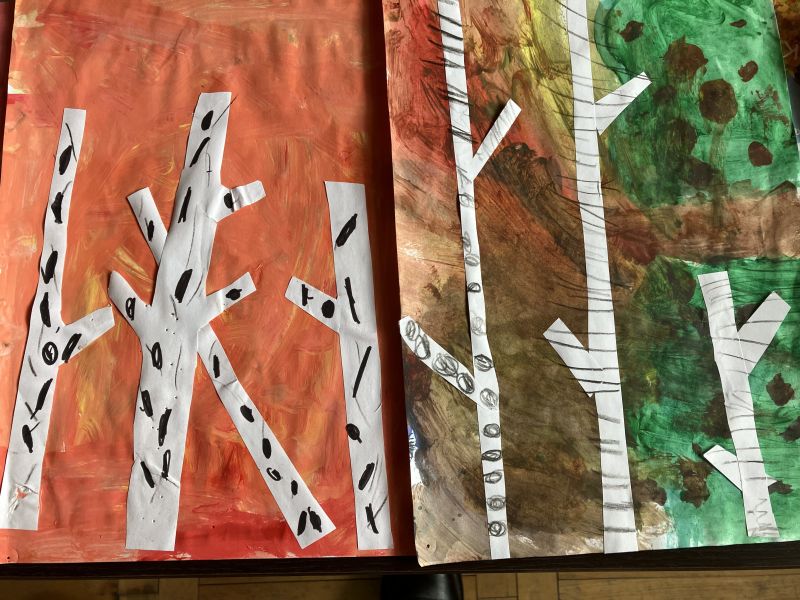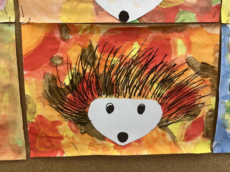 Także na placu zabaw zrobiło się kolorowo. Dzieci bawią się wesoło rozgrzebując i rzucając liście. Zbierają te najpiękniejsze i wykorzystują je w pracach plastycznych. W ruch poszły farby, nożyczki, papiery kolorowe i kleje. Uczniowie eksperymentowali mieszając różne farby i tworzyli barwy jesieni.