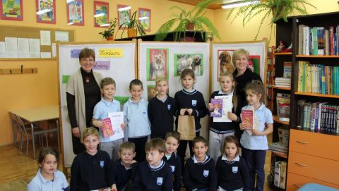 W listopadzie uczniowie klasy 2a wzięli udział w Szkolnym Konkursie Czytelniczym „Czarny, kudłaty, piegowaty..” ze znajomości książki Wandy Chotomskiej pt. „Pięciopsiaczki”.