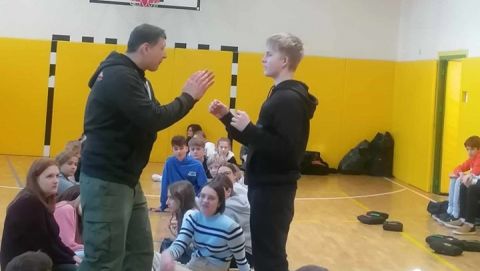 Wczoraj uczniowie z klas siódmych i ósmej mieli możliwość wysłuchania wykładu o mechanizmach agresji oraz udziału w ćwiczeniach podstawowych technik samoobrony. Trener Jakub Klimek przekazywał młodzieży tajniki wiedzy o tym, jak reagować w sytuacji zagrożenia, aby unikać konfrontacji oraz minimalizować konieczność obrony własnej. Uczniowie dowiedzieli się, że agresja i przemoc to domena osób o niskim poczuciu własnej wartości. Uczniowie zostali pochwaleni za dyscyplinę i udział w zajęciach.Tekst: Marlena Kałużniak