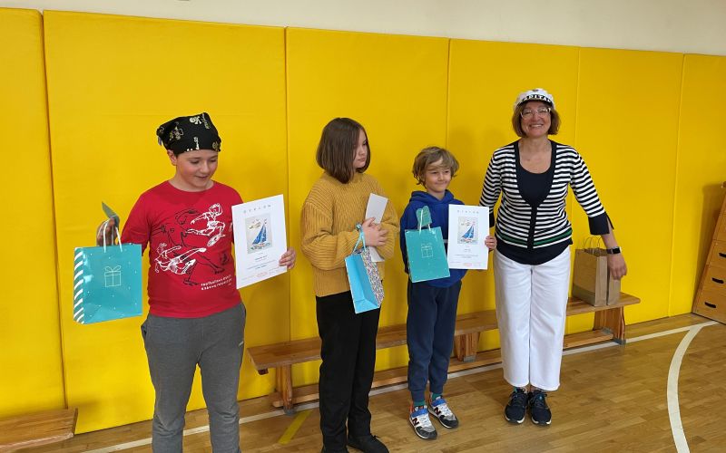 22 marca 2023roku uroczyście zakończyliśmy szkolny konkurs czytelniczy dla klas 3. Tegoroczni trzecioklasiści zmierzyli się z książką Anny Onichimowskiej „ Daleki rejs”. Użyte w konkursie hasło „Czytając- żeglujemy” miało uświadomić dzieciom, iż czytanie książek to żeglowanie podczas, którego odkrywamy dla siebie nowe miejsca i historie bohaterów. Poszerzamy swoje horyzonty myślowe, odpływamy w świat marzeń i fantazji.W konkursie wzięło udział 50 uczniów. Podczas I etapu uczestnicy indywidualnie rozwiązywali test wiedzy. W II etapie kapitan Aleks napisał list i zaprosił załogi klasowe na żeglarską ścieżkę zdrowia podczas, której wspólnie doskonalili swoją formę fizyczną, bawili się i wesoło śpiewali.