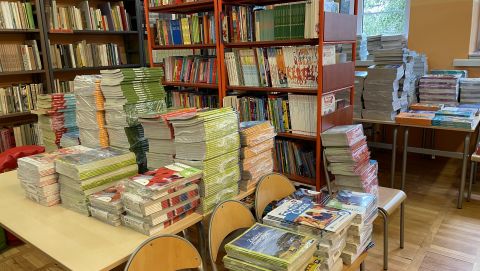 gigantyczne góry podręczników i ćwiczeń znajdujące się w bibliotece już zniknęły! Dzisiaj ostatni uczeń naszej szkoły wypożyczył swój zestaw podręczników.