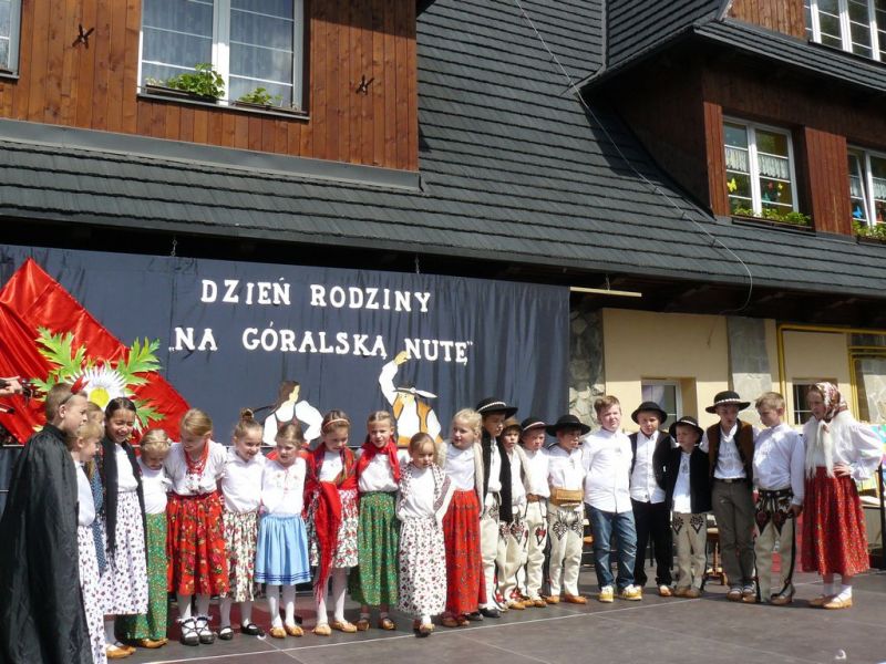 21 maja świętowaliśmy w naszej szkole IV Dzień Rodziny „Na góralską nutę”. Uważamy, że każda okazja jest dobra, by spotkać się i wspólnie spędzić czas z rodziną. Piękna pogoda sprzyjała zabawom i wypoczynkowi na świeżym powietrzu. Dzień rozpoczął się występami uczniów. Swoje talenty aktorskie zaprezentowali uczniowie kl.2b i 2c w góralskiej sztuce teatralnej „O Jaśku”. Przed publicznością wystąpili także finaliści szkolnego konkursu talentów, zespół muzyczny Ogniki Radości, młodzi recytatorzy i piosenkarze oraz Zespół Zornica w barwnym przedstawieniu „Na Kalatówkach”.