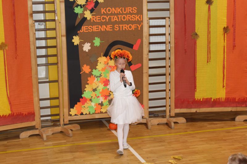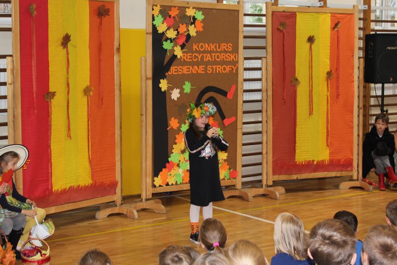 Dnia 28 października 2019 uczniowie klas 1-3 wzięli udział w szkolnym konkursie recytatorskim i strofami wierszy pożegnali złotą polską jesień. Komisja konkursowa oceniała pamięciowe opanowanie tekstu, interpretację wykonania oraz wrażenie artystyczne. Mocno podkreśliła wielki wkład rodziców w przygotowanie pięknych jesiennych strojów dla wykonawców.