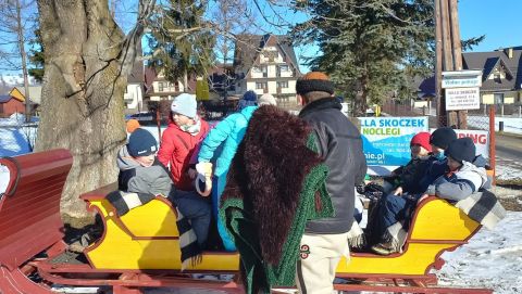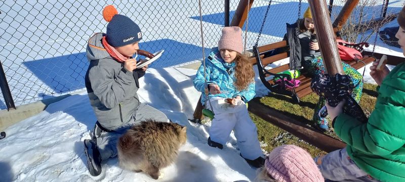W ostatni czwartek karnawału wybraliśmy się na przejażdżkę kuligiem. Przepiękna pogoda sprzyjała spędzaniu czasu na świeżym powietrzu i swobodnym zabawom na śniegu. Kiedy już zmęczenie dało o sobie znać wyruszyliśmy w drogę powrotną. A tam czekało już na nas ognisko i gotowa do pieczenia kiełbasa. Aby tradycji stało się za dość na stołach znalazły się świeżutkie i pulchniutkie pączki oraz kruche chrusty. O wszystko zadbali nasi kochani rodzice, którym bardzo dziękujemy. Miło, wesoło i pożytecznie spędziliśmy ten dzień, ponieważ na koniec zorganizowaliśmy zbiórkę pieniędzy dla małej Matyldzi. Życzymy jej, by za kilka lat cieszyła się i bawiła tak jak my, a jej serduszko było zdrowe.