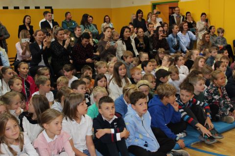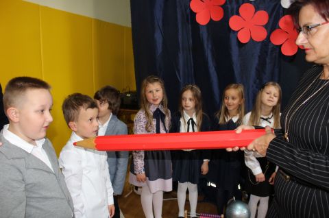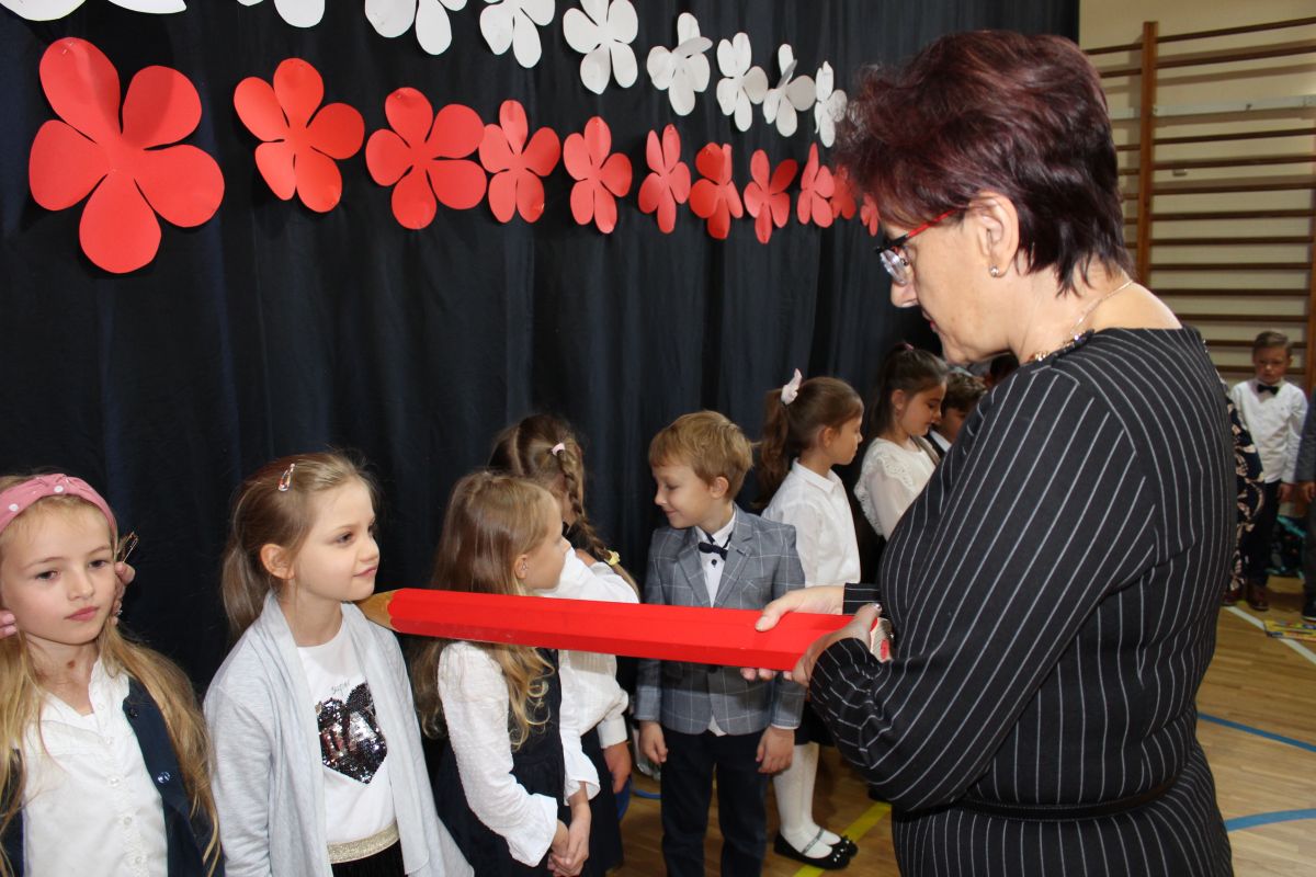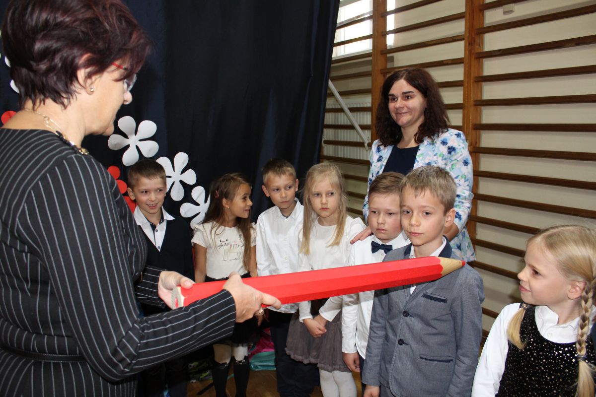21 października 2022r. w naszej szkole odbyła się uroczystość pasowania na uczniów dzieci z klasy Ia i Ib. W obecności koleżanek i kolegów z klas drugich i trzecich, rodziców i młodszego rodzeństwa pierwszoklasiści na początku zaprezentowali krótki program artystyczny: recytowali wiersze, śpiewali piosenki, a nawet „zagrali” na kredkach. Następnie w niezwykle podniosłej atmosferze, przed pocztem sztandarowym ślubowali być dobrymi Polakami, dobrze się uczyć, godnie reprezentować swoją szkołę, swym zachowaniem i nauką sprawiać radość rodzicom i nauczycielom. Po złożeniu ślubowania pani dyrektor dokonała symbolicznego pasowania na ucznia, dotykając ramion dzieci wielką czerwoną kredką. Od tej chwili stali się oni nowymi członkami naszej wielkiej szkolnej rodziny! Uczniowie otrzymali legitymacje szkolne, pamiątkowe dyplomy, a od swoich rodziców medale oraz „ołówek” z niespodzianką. Miłym akcentem uroczystości był wspólny słodki poczęstunek.