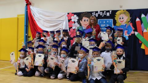 „Ślubuję być dobrym Polakiem, dbać o dobre imię swojej klasy i szkoły. Będę uczyć się w szkole jak kochać Ojczyznę, jak dla niej pracować, kiedy urosnę. Będę starał się być dobrym kolegą, swym zachowaniem i nauką sprawiać radość rodzicom i nauczycielom” - takie przyrzeczenie składali pierwszoklasiści.