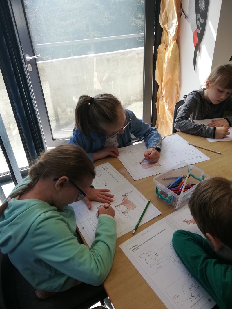 10 maja 2022r. uczniowie klasy II b wybrali się do Centrum Edukacji Przyrodniczej, gdzie poszerzyli swoją wiedzę na temat zwierząt żyjących w Tatrach. Dowiedzieli się, że biała plamka, którą lis ma na ogonie nosi nazwę kwiatek. Lis jest nazywany brudaskiem, przechyrą. Chodzi jak modelka, zostawia tropy ułożone w sznureczek. Dzięcioł ma bardzo długi język, na którym są haczyki pomagające chwycić owada. Kozica w zimie ma czarne futro, nie bez znaczenia. Chodzi o to, by czarny kolor przyciągał promienie słońca i dodatkowo ogrzewał zwierzę. Futro kozicy jest wielowarstwowe, a rogi nazywają się haki. Świstak jest bardzo czystym zwierzęciem, w norze znajduje się specjalne miejsce, gdzie załatwia swoje potrzeby. Spędza 80% swojego życia w norze. To tylko kilka ciekawych informacji jakie przekazała uczniom pani Elżbieta Kauzal. W dalszej części spotkania uczniowie rozpoznawali tropy i ślady zwierząt, a następnie samodzielnie odciskali trop wybranego zwierzątka, który zabrali ze sobą . Na końcu uczniowie rozbiegli się po ogrodzie CEP w poszukiwaniu zaginionego skarbu.