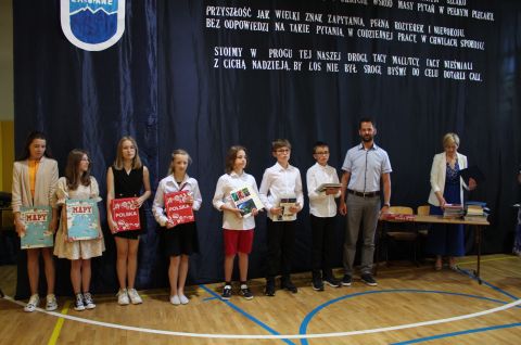 Naszą uroczystość zaszczycili swoją obecnością p. Anna Karpiel-Semberecka oraz p. Grzegorz Cisło, którzy w imieniu Burmistrza Zakopanego Leszka Doruli zwrócili się do zgromadzonych uczniów, nauczycieli a także rodziców i podziękowali za trud włożony w nauczanie i wychowanie młodzieży. Przekazali gratulacje za wysokie wyniki w nauce i życzyli uczniom bezpiecznych, słonecznych wakacji oraz dobrego wypoczynku, dającego siły do pracy w przyszłym roku.