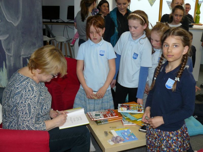 5 maja 2016 r. kilka uczennic wraz z p. Teresą Hoły i p. Joanną Bąk wzięły udział w przemiłym spotkaniu autorskim w Miejskiej Bibliotece Publicznej w Zakopanem. Gościem spotkania była autorka książek dla najmłodszych czytelników pani Barbara Gawryluk. Dzieci z wielkim zainteresowaniem słuchały przejmujących opowieści o Dżoku, Klifce i Balticu bohaterach prezentowanych książek. Pani Barbara Gawryluk jest nie tylko pisarką, ale także dziennikarką radiową i tłumaczką. W naszej szkolnej bibliotece znajduje się seria tajemnic, które wyjaśniają Lasse i Maja w przekładzie z języka szwedzkiego na język polski pani Barbary Gawryluk. Na zakończenie dzieci mogły zrobić sobie pamiątkowe zdjęcie z autorką i otrzymać dedykację w zakupionych książeczkach.