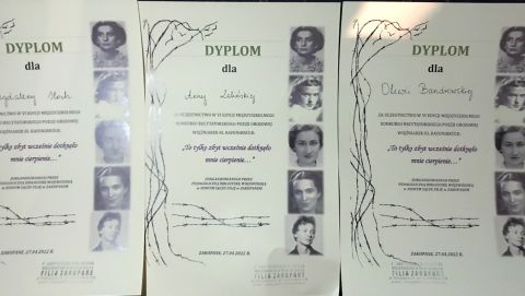27 kwietnia 2022r. uczennice klasy 8b Oliwia Bandrowska, Magdalena Stoch i Anna Zalińska wzięły udział w VI edycji Międzyszkolnego Konkursu Recytatorskiego Poezji Obozowej Więźniarek z KL Ravensbrück – „To tylko zbyt wcześnie dotknęło mnie cierpienie…”. Konkurs ten organizowała Pedagogiczna Biblioteka Wojewódzka w Nowym Sączu Filia Zakopane dla upamiętnienia i oddania hołdu ofiarom zamordowanym w KL Ravensbrück oraz ocalałym, byłym więźniarkom obozu. Przesłuchania odbyły się w sali kinowej Szkoły Podstawowej nr 5 w Zakopanem. Uczennice przygotowywała do konkursu pani Lucyna Wolska. Gratulujemy naszym koleżankom pięknej recytacji.