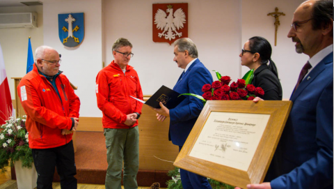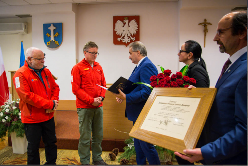 12 listopada 2019 reprezentacja szkolnej społeczności uczestniczyła w uroczystej Sesji Rady Miasta z okazji 110. rocznicy powstania Tatrzańskiego Ochotniczego Pogotowia Ratunkowego. My, spod Zaruskiego złożyliśmy ratownikom serdeczne życzenia dziękując za Ich służbę i poświecenie dla drugiego człowieka. Pod kierunkiem nauczycieli przygotowaliśmy krótki program artystyczny o naczelniku Zaruskim. Szczególnym upominkiem dla toprowców była piosenka specjalnie ułożona na tę okazję pod znamiennym tytułem „Pierwsza miłość - góry”. Wszyscy razem przy akompaniamencie gitary zaśpiewaliśmy ją na znaną melodię Czerwonych Gitar „Trzecia miłość żagle”. Miłym dodatkiem upominkowym był obraz śmigłowiec w akcji namalowany przez naszych uczniów, który wręczyła naczelnikowi TOPR pani dyrektor Aleksandra Łakomik.
