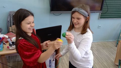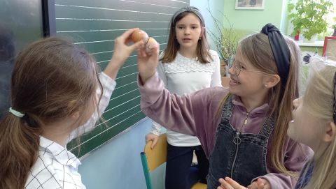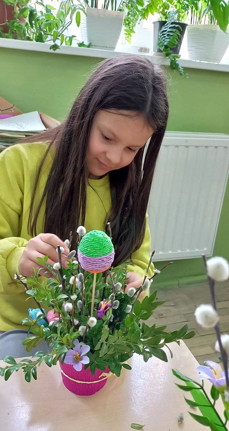 Piękną tradycją są świąteczne spotkania klasowe – wigilijne i wielkanocne, a przygotowania do nich dostarczają wielu pozytywnych emocji. Już przed Niedzielą Palmową poznaliśmy technikę wykonywania tradycyjnych palm wielkanocnych. Trzeba było się natrudzić, aby taką palmę wykonać. Znacznie łatwiejszym okazało się zrobienie dekoracyjnego stroika na wielkanocny stół. Tuż przed wiosenną przerwą podzieliliśmy się jajkiem i złożyliśmy sobie najlepsze życzenia. Aby tradycji stało się zadość były też wielkanocne zabawy. Bawiliśmy się w tak zwaną „walatkę”, która polega na stukaniu się czubkami jajek lub toczeniu pisanek po stole, tak by się zderzyły. Wygrał ten, którego jajko rozbiło pisankę przeciwnika. Nasi kochani rodzice zadbali, aby na klasowym stole nie zabrakło wielkanocnych potraw i wypieków, za co serdecznie dziękujemy.