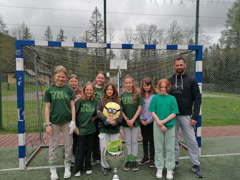 Po wygranych turniejach eliminacyjnych na etapie gminnym i powiatowym nasze młode piłkarki w dniu 11 maja udały się do Wadowic na finał wojewódzki. Turniej rozgrywany w fantastycznej atmosferze, przy pięknej pogodzie i na nowym obiekcie klubu „SKAWA” Wadowice, dostarczył nam niesamowitych emocji. Nasza szkolna drużyna zwyciężyła w sposób zdecydowany we wszystkich swoich meczach grupowych i wywalczyła awans do fazy grupowej z pierwszego miejsca. Natomiast największe emocje nadeszły pod koniec zwycięskiego przez naszą drużynę meczu ćwierćfinałowego. Właśnie w tym momencie nasza bramkarka Martyna Bandrowska doznała bardzo nieprzyjemnej i źle wyglądającej kontuzji ręki i konieczna była wizyta w wadowickim szpitalu. Dalszy udział naszej zawodniczki w kolejnych meczach turnieju oczywiście był wykluczony. Reakcja i postawa pozostałych zawodniczek zasługuje na wielkie słowa uznania i szacunek. Najpierw wygrały swój mecz półfinałowy, by chwilę później zwyciężyć w meczu finałowym, cały czas motywując się hasłem „Gramy dla Martynki”. Fantastycznie zagrała Małgorzata Zagórska, która została królem strzelców całego turnieju (41 zdobytych bramek), ale także Magdalena Zagórska i Nadia Copija. Są to zawodniczki, które na co dzień trenują piłkę nożną w zakopiańskich klubach. Nie wolno jednak zapominać o pozostałych zawodniczkach: Martynie Bandrowskiej, Amelii Wiatr, Gabrieli Lassak, Julii Bizub i Mai Węglarz, które na boisku zostawiły mnóstwo zdrowia, woli walki i poświęcenia, bez których nie udałoby się osiągnąć tego wielkiego sukcesu. Niesamowita postawa całej naszej drużyny otworzyła furtkę do przeżycia jeszcze wspanialszej przygody podczas finału ogólnopolskiego, który odbędzie się w dniach 14-16 czerwca w Warszawie.